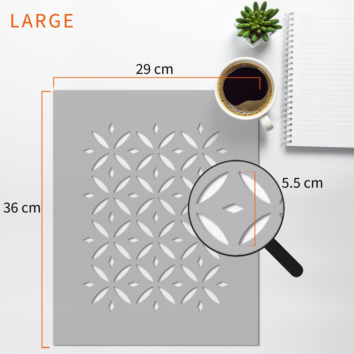 Our Alhambra stencil is immediately recognisable as a traditional Moroccan design. The shapes used to create this repeatable pattern are commonly seen in Moroccan style, create your very own bold feature wall using this versatile stencil.