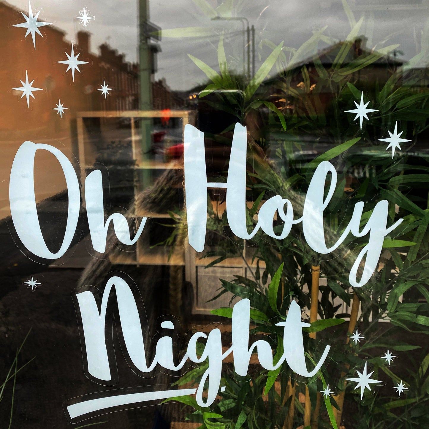 The words 'Oh Holy Night' are printed in reverse so it is to be read from the outside of your window.