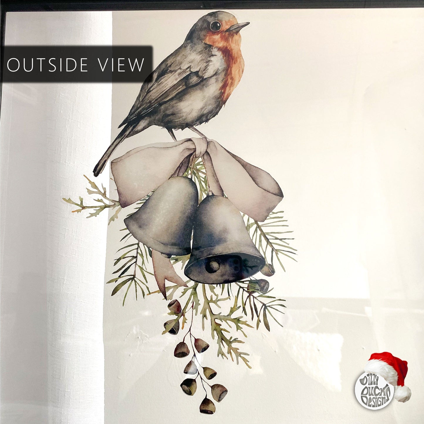 Decorate your home this Winter with our Christmas Robin On Bells Window Decal.