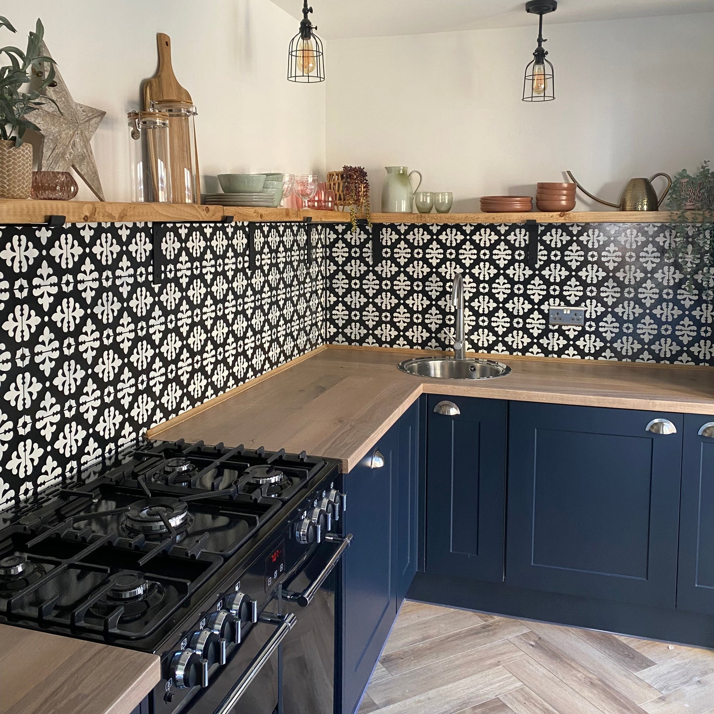 If you are unsure what size to go for, think about how busy or simple you want the design to look.  Lay a tape measure across your space and decide how many tile patterns you want/can fit in that space.