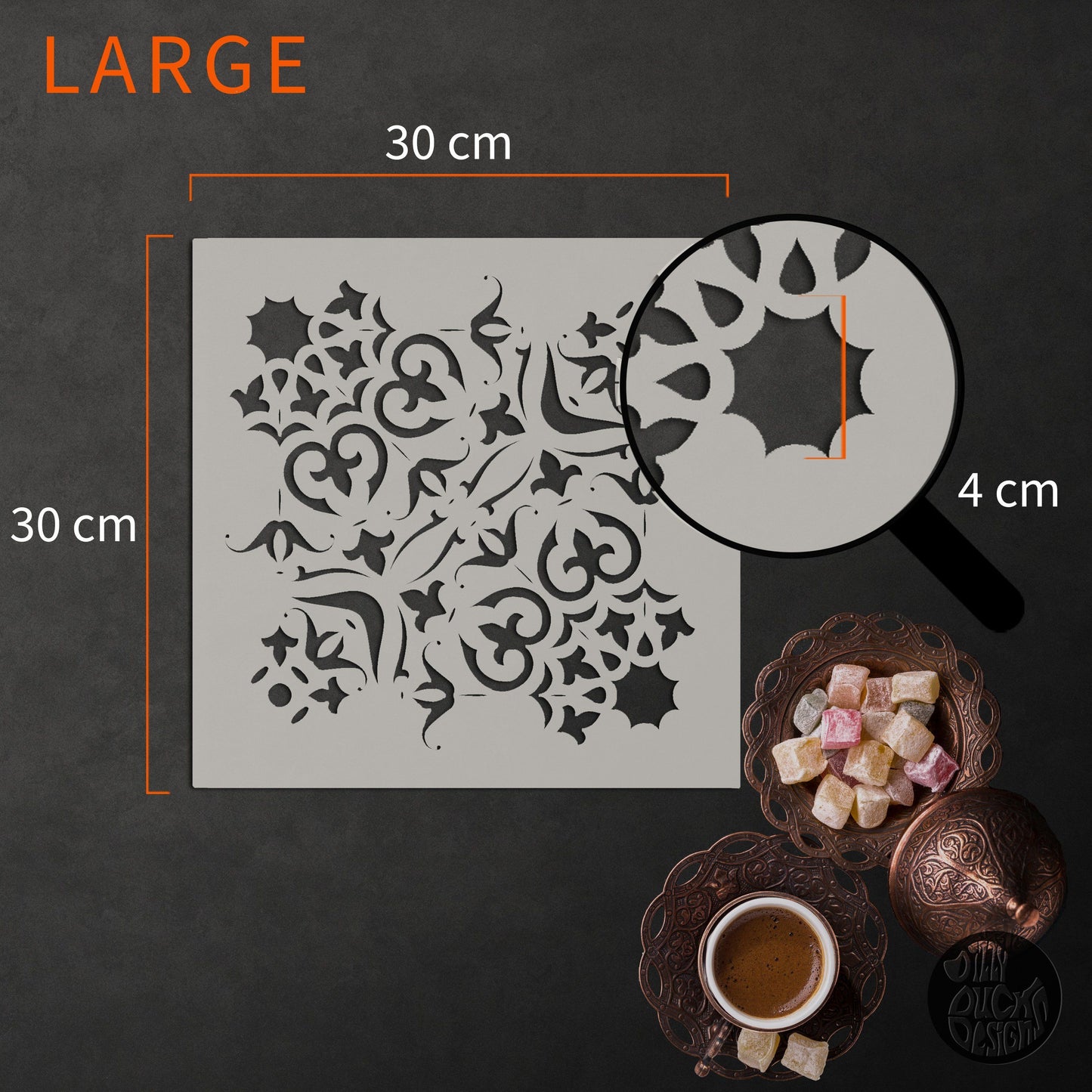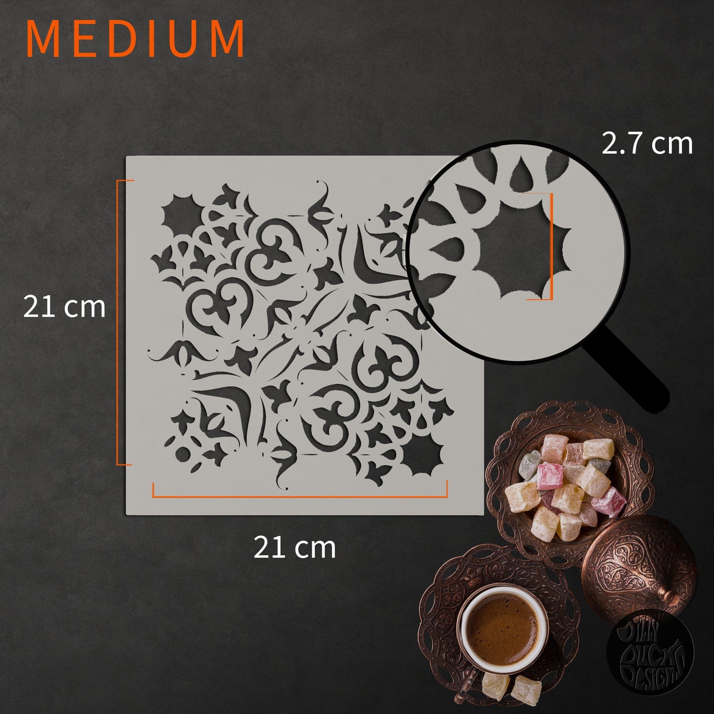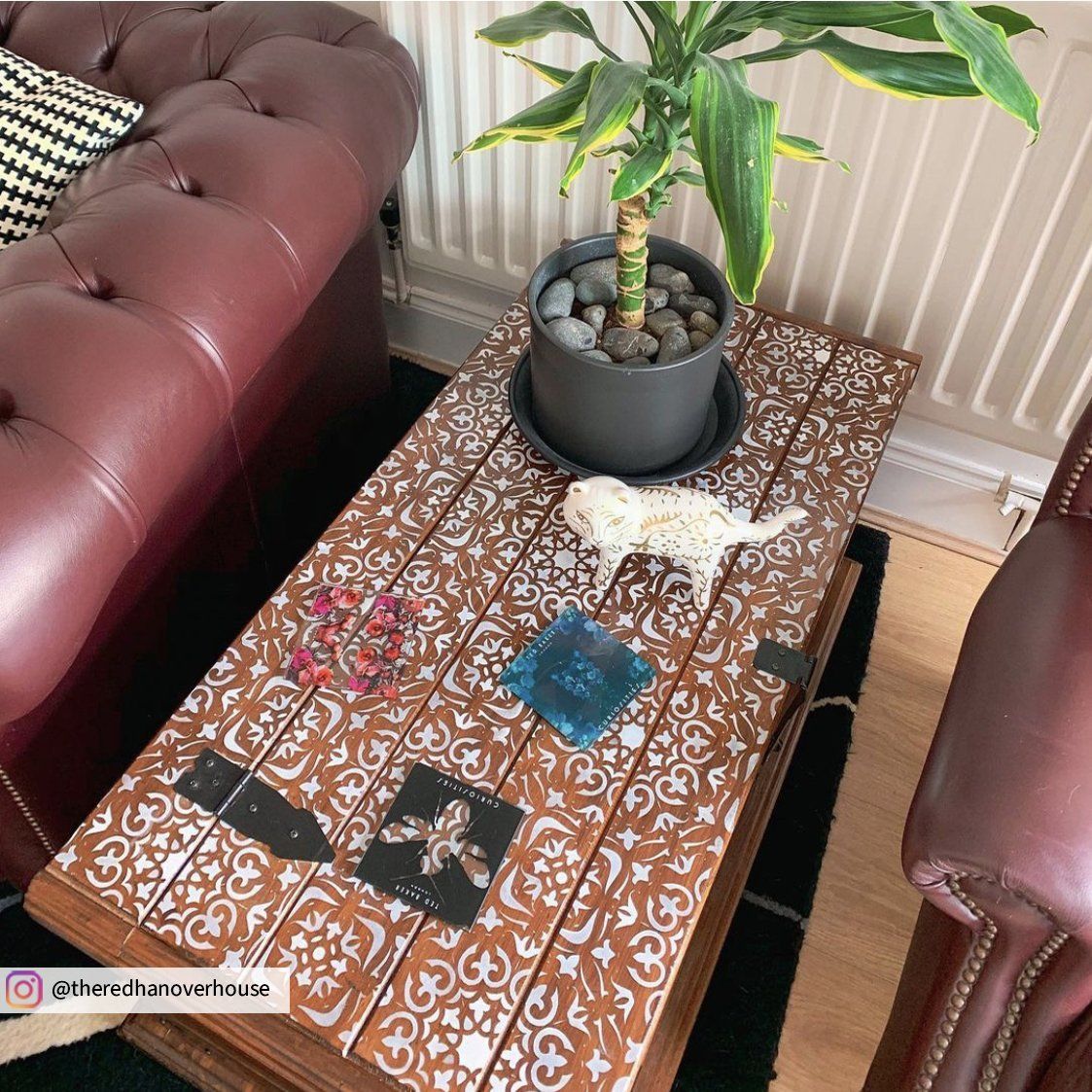 The Mysuru Furniture Stencil is part of our Indian Collection, featuring a Mandala inspired repeat pattern.  Once repeated the pattern takes on the effect of tiles with a very distinct Indian style.
