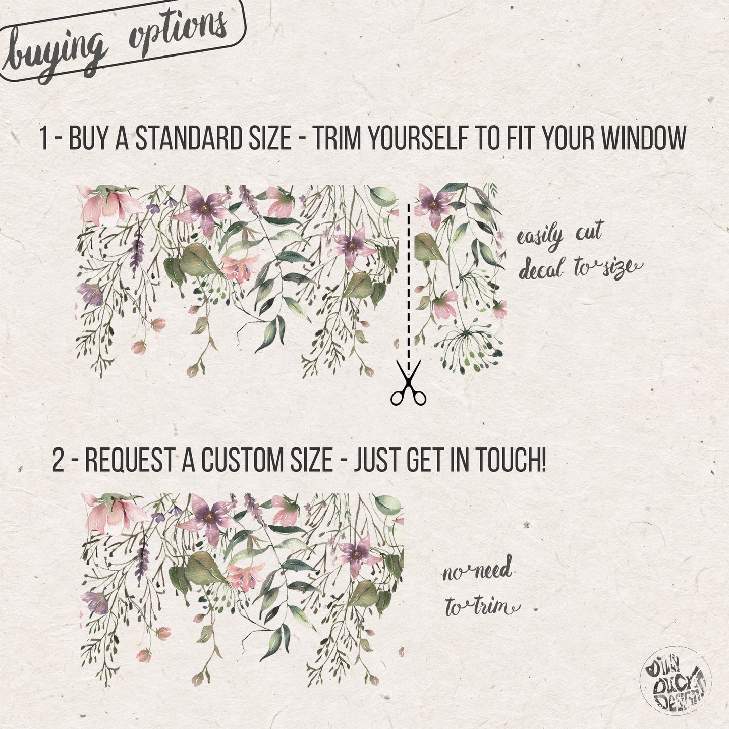 We can trim the width of your window decal to fit your window perfectly, or create a different custom size altogether.