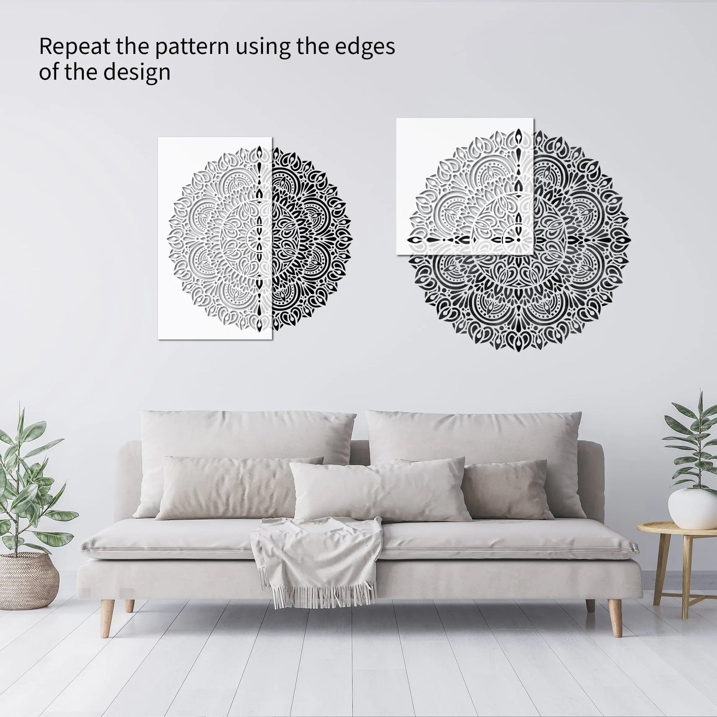 Dizzy Duck Designs Mandala Stencils are the perfect way to bring a little bit of Eastern style into your home.  Stenciling is an effective and inexpensive way to spruce up tired or plain walls, floors or furniture.  We provide a wide range of reusable home decor stencils for painting.  Whatever your stencil project, large or small, we’ve got the perfect stencil for the job!
