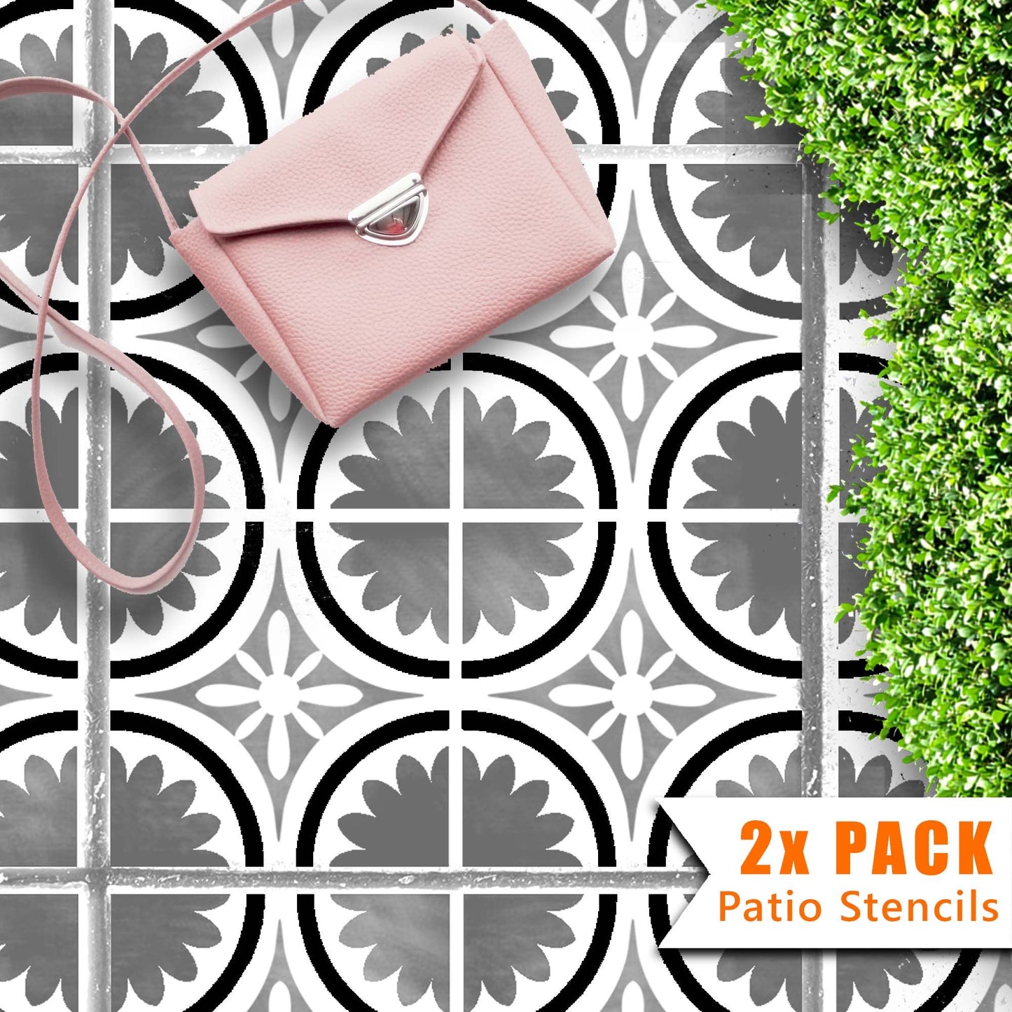Go to our Rectangle Patio Stencils if your slabs are rectangle, or Faux-Tile Stencils if you have decking or non-slabbed concrete patios.