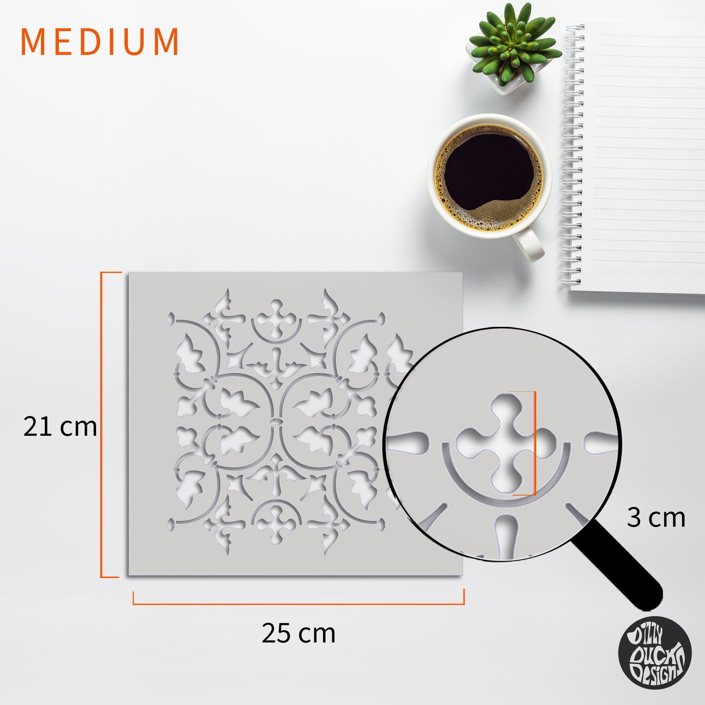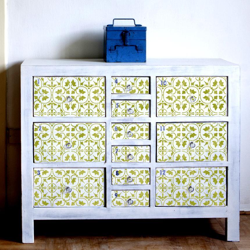 Our Zamora Furniture Stencil is an intricate pattern inspired by Moroccan-style tiles. It would look fab on a table top, wardrobe doors, drawer fronts...wherever you like!