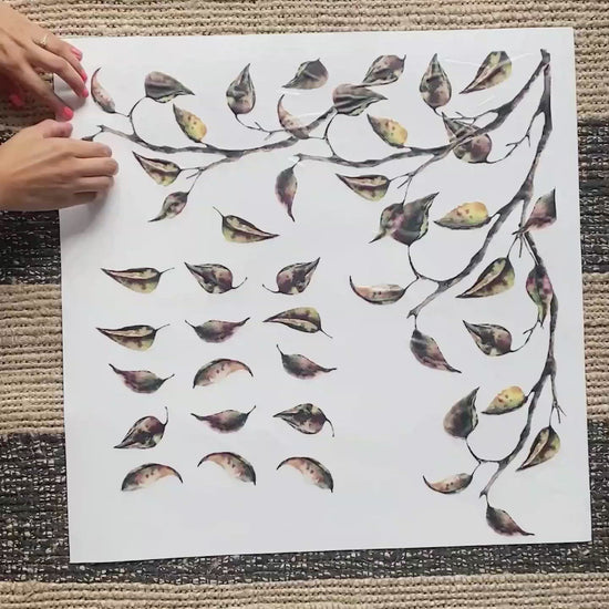 2x corner decals, 16 separate leaves, a felt squeegee and an instruction leaflet.