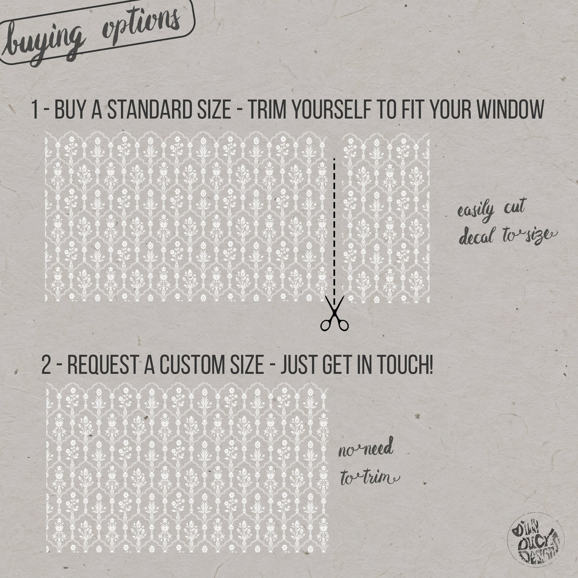 We can trim the width of your window decal to fit your window perfectly, or create a different custom size altogether.