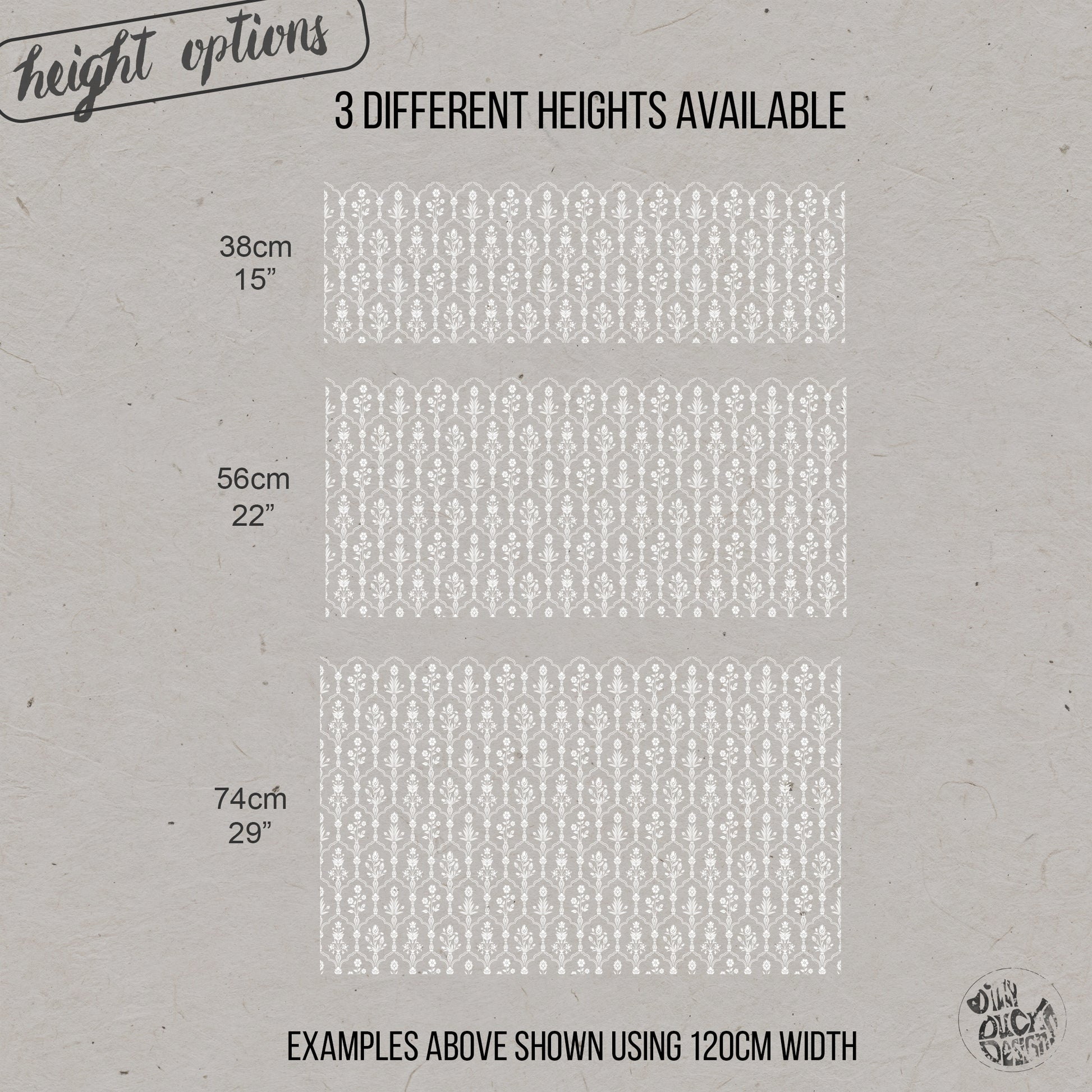 Widths:  60, 90, 120, 150 and 180 cm (24, 35, 47, 59 and 71 inches)