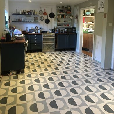 Create a realistic tile pattern on non-tiled floors, walls or furniture.  A fab budget makeover idea for your home or business!