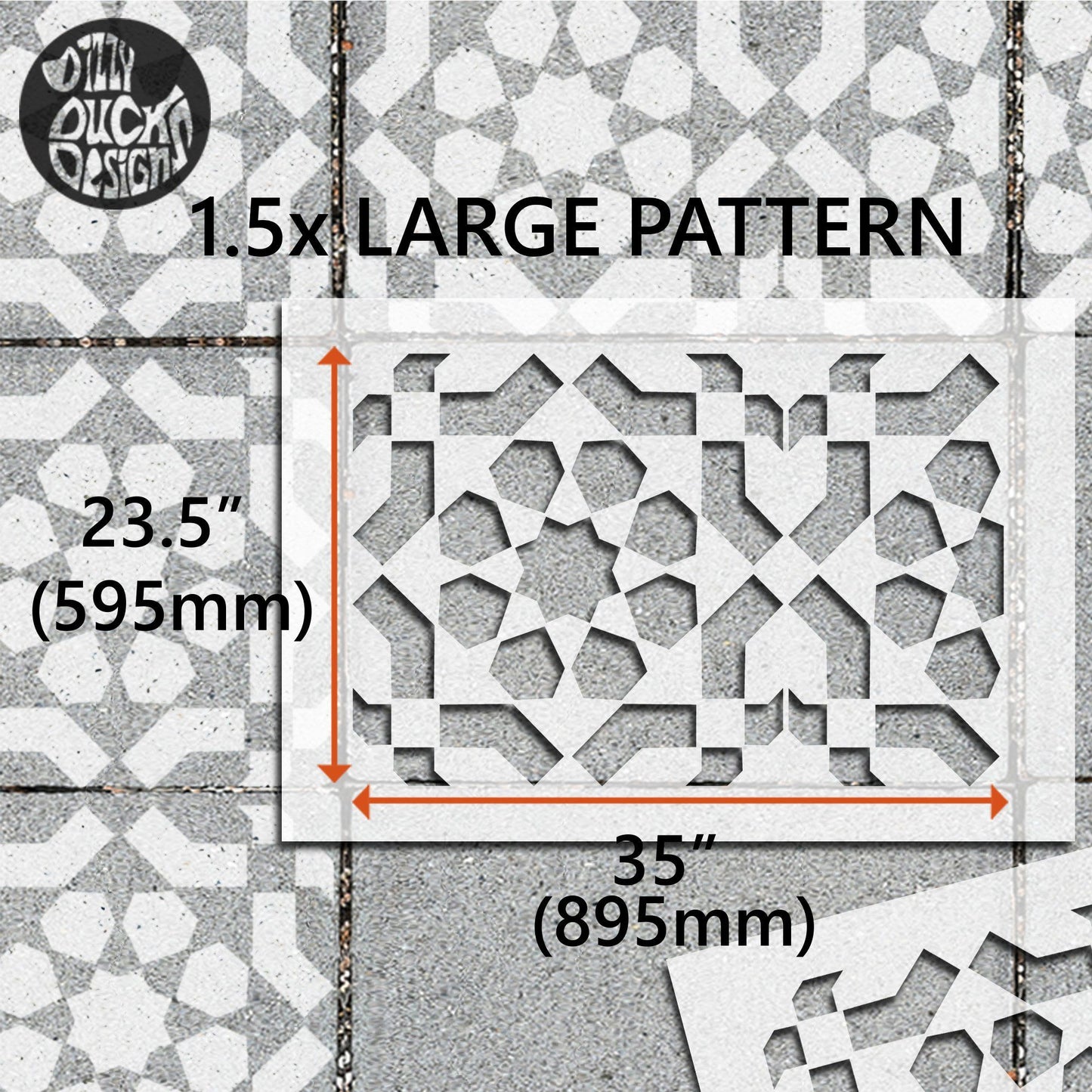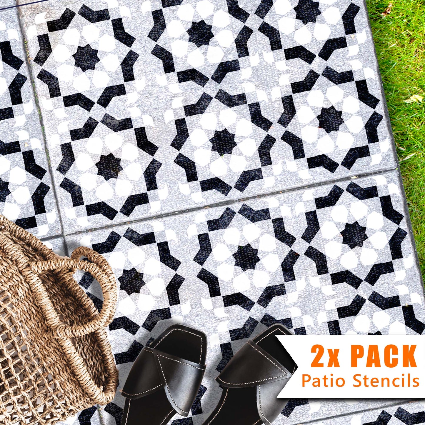 Go to our Square Patio Stencils if your slabs are square, or Faux-Tile Stencils if you have decking or non-slabbed concrete patios.