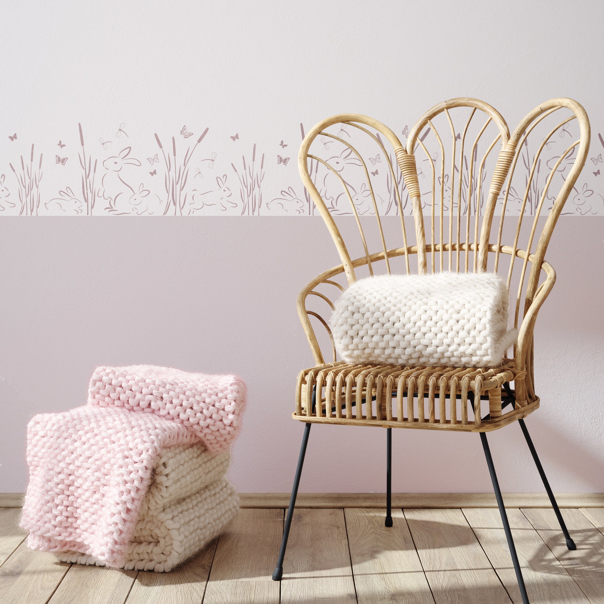 This stencil makes it easy to create a repeating pattern along the top, middle, or bottom of the wall, transforming a plain surface into a delightful storybook scene. Soft pastel shades work beautifully to evoke a gentle, calming atmosphere, while brighter tones can create a more playful vibe. The bunny rabbits hopping between the tall bulrushes and flitting butterflies bring life and movement to the room, making it a nurturing and imaginative environment for little ones to grow in.