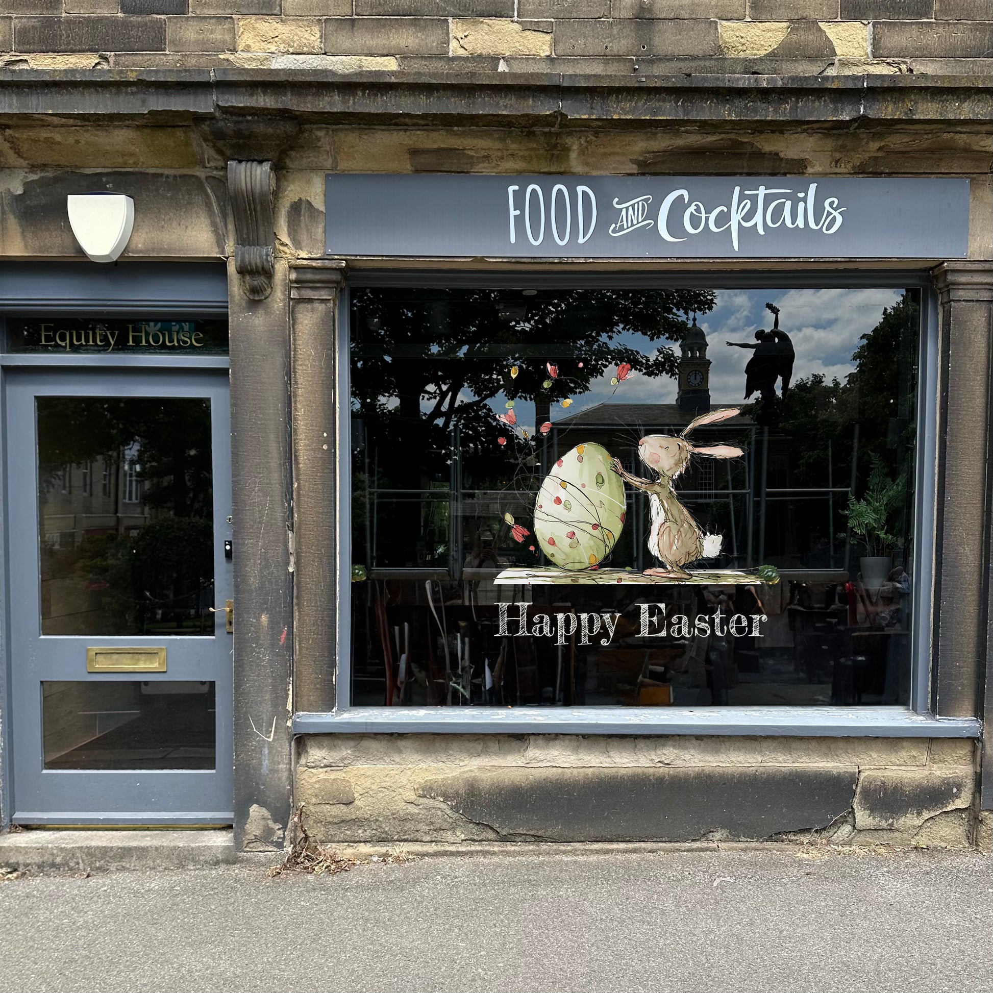 Quirky Happy Easter Rabbit with Egg Quote Window Decals