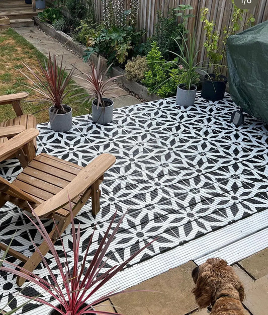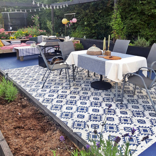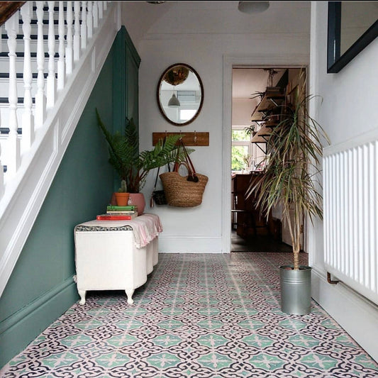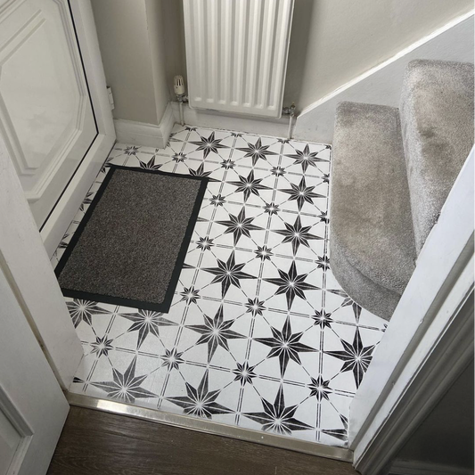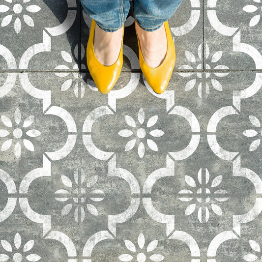 If your floor is tiled, you're best to use one of our Tile Stencils. Custom sizing available at no extra cost!