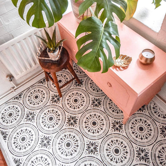 Our Floor Stencils are a perfect DIY budget floor makeover idea...