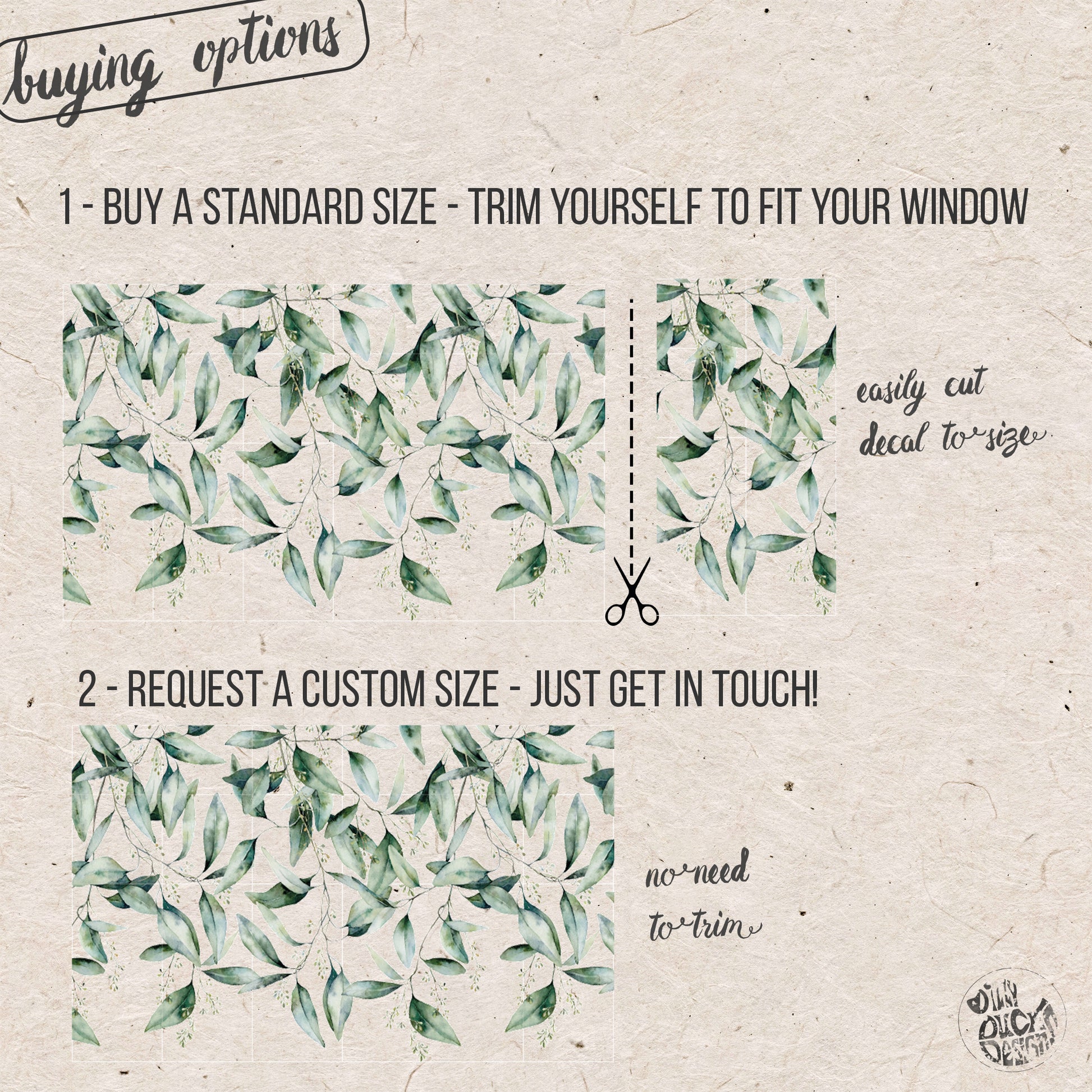We can trim the width of your window decal to fit your window perfectly, or create a different custom size altogether.