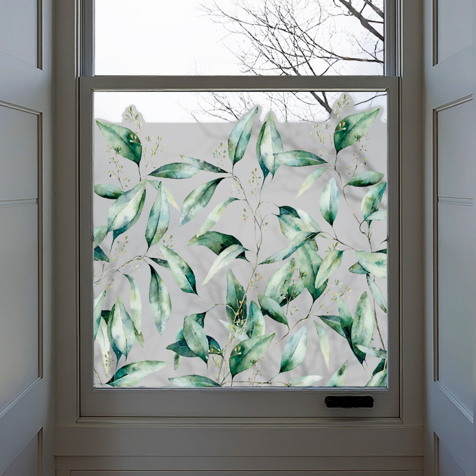 Seeded Eucalyptus Frosted Window Privacy Film Border