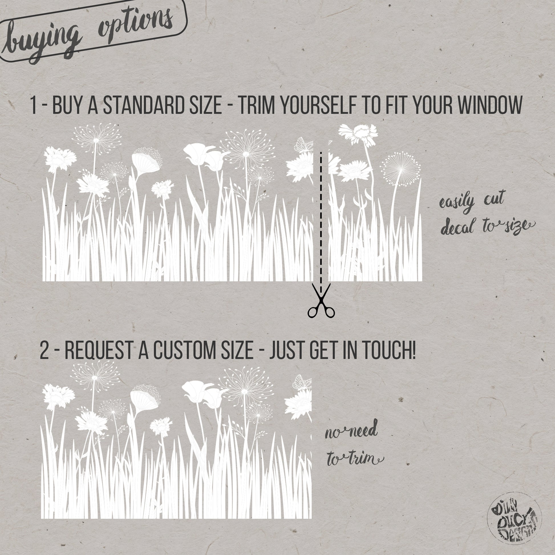 Non adhesive static cling vinyl – easy to apply and reposition – won’t damage your windows!