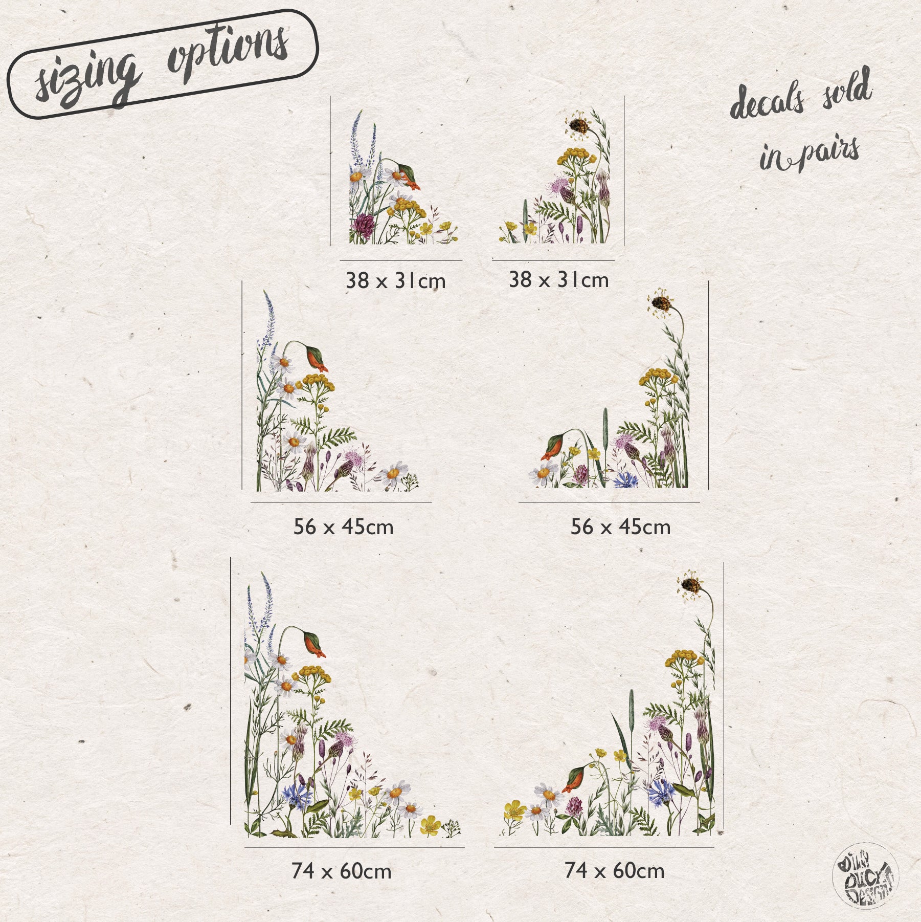 See sizing image for more details on individual decal sizes and what you will receive.