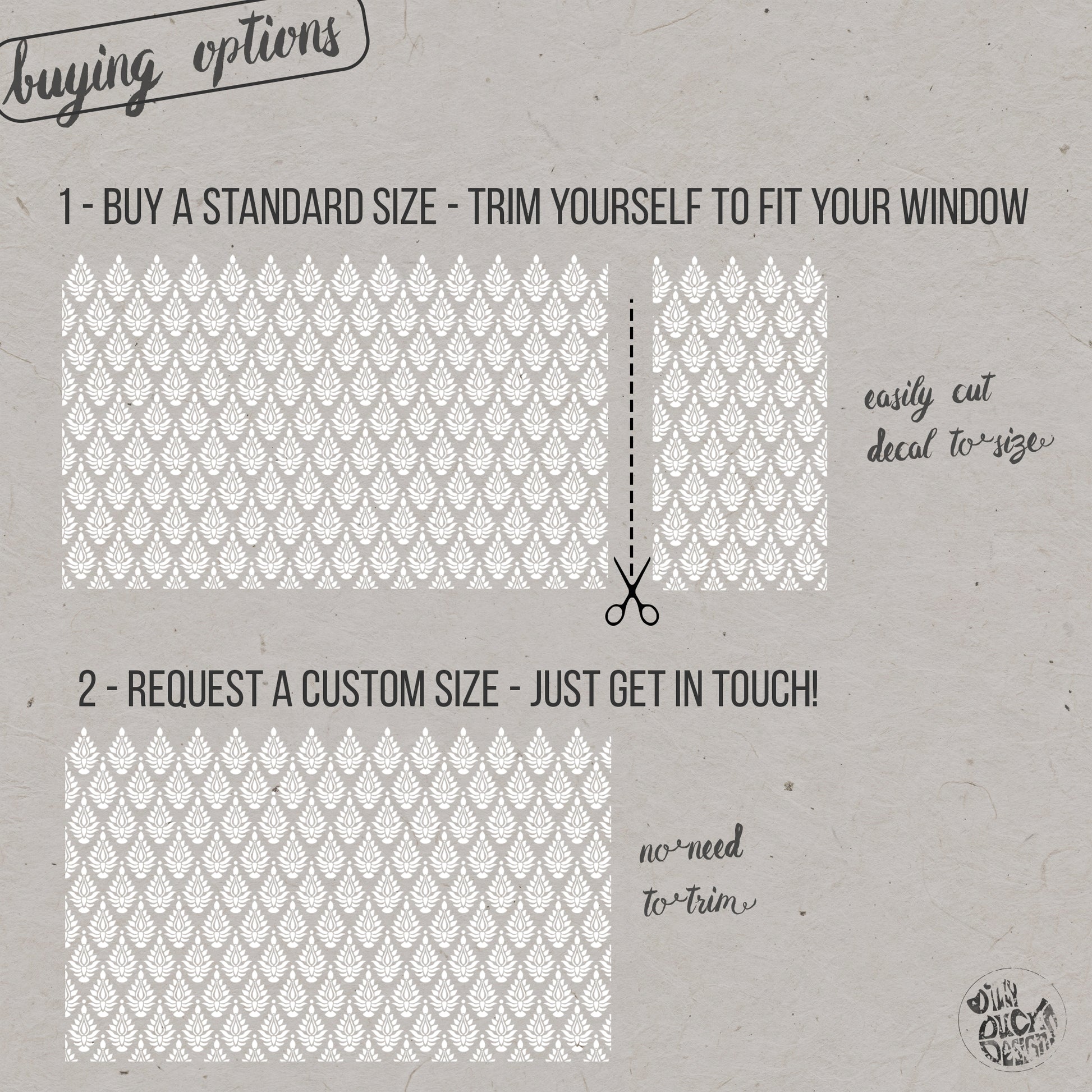 We can trim the width of your window decal to fit your window perfectly, or create a different custom size altogether.