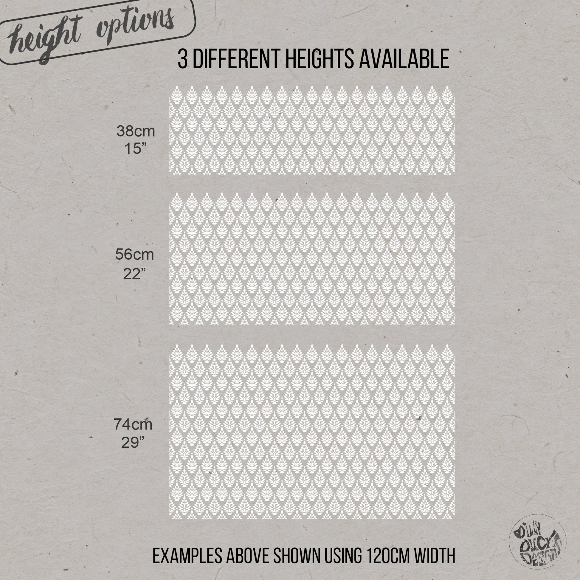 Widths:  60, 90, 120, 150 and 180 cm (24, 35, 47, 59 and 71 inches)