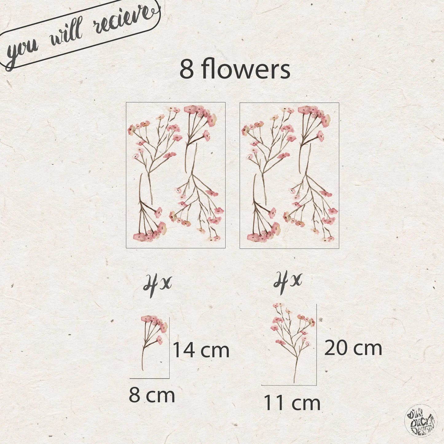 There are 2 sizes of flower sprigs in each set: