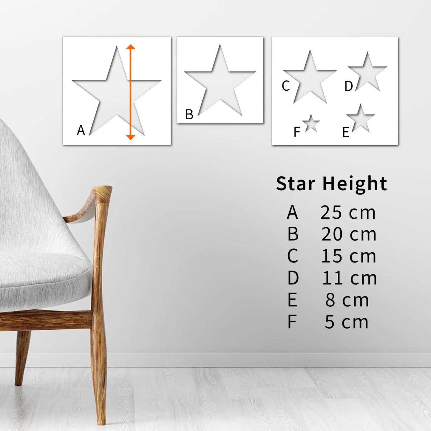 SET OF SIX 5-POINT STAR Wall and Furniture Stencils