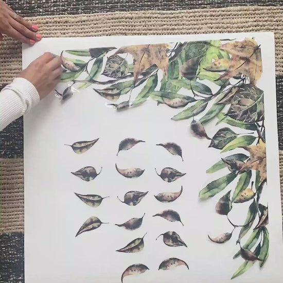 2x corner decals, 16 separate leaves, a felt squeegee and an instruction leaflet.