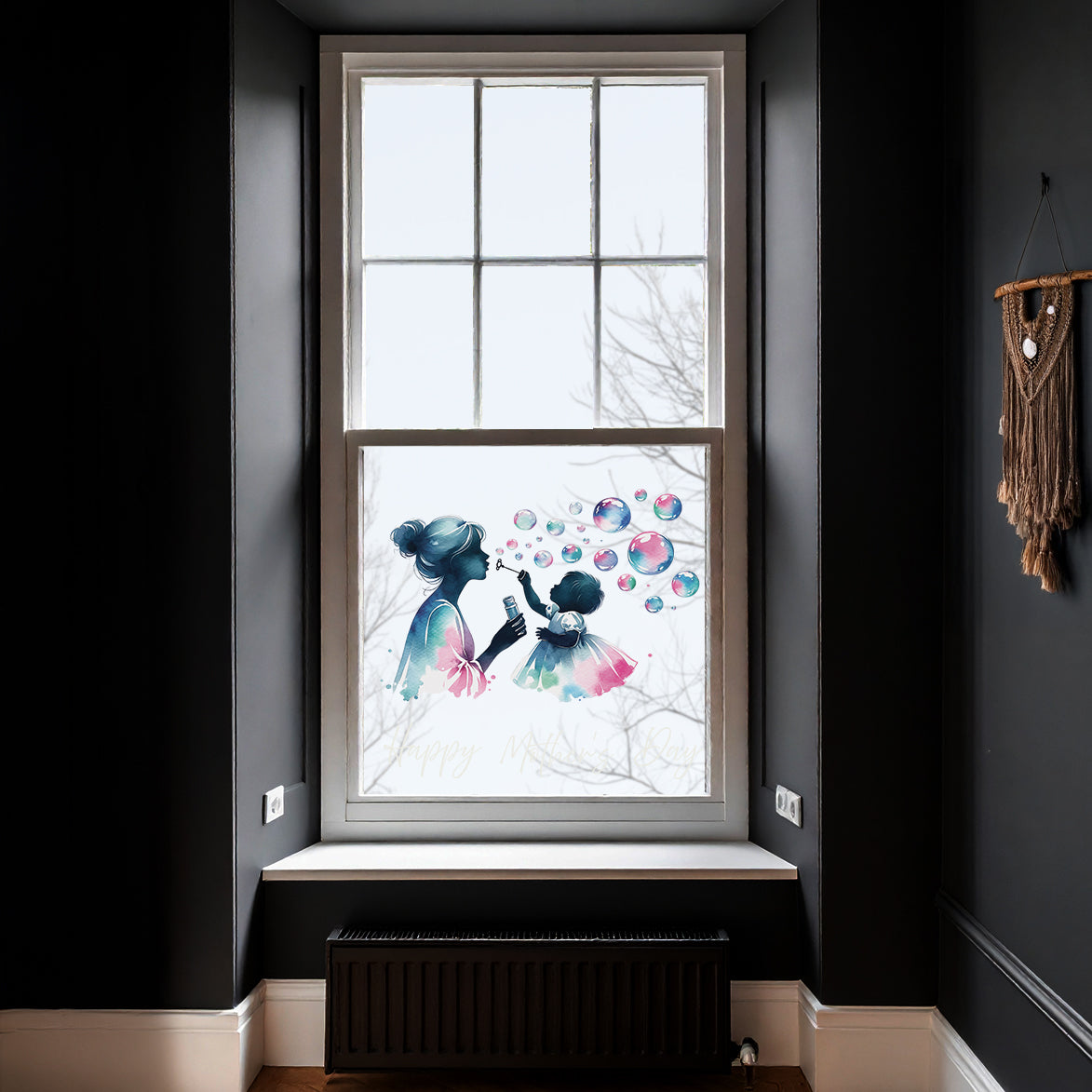 Mother & Child Blowing Bubbles Mother's Day Window Decal