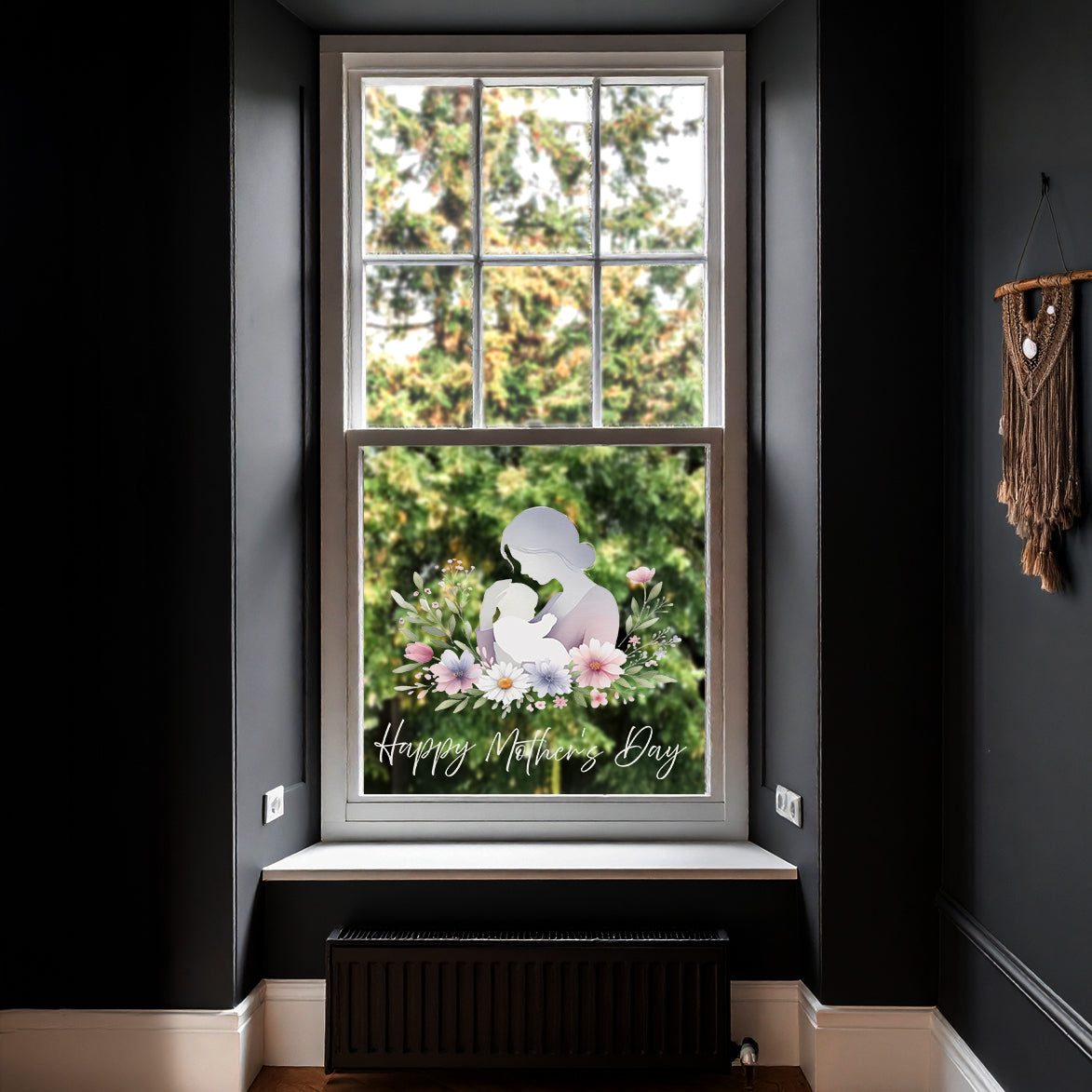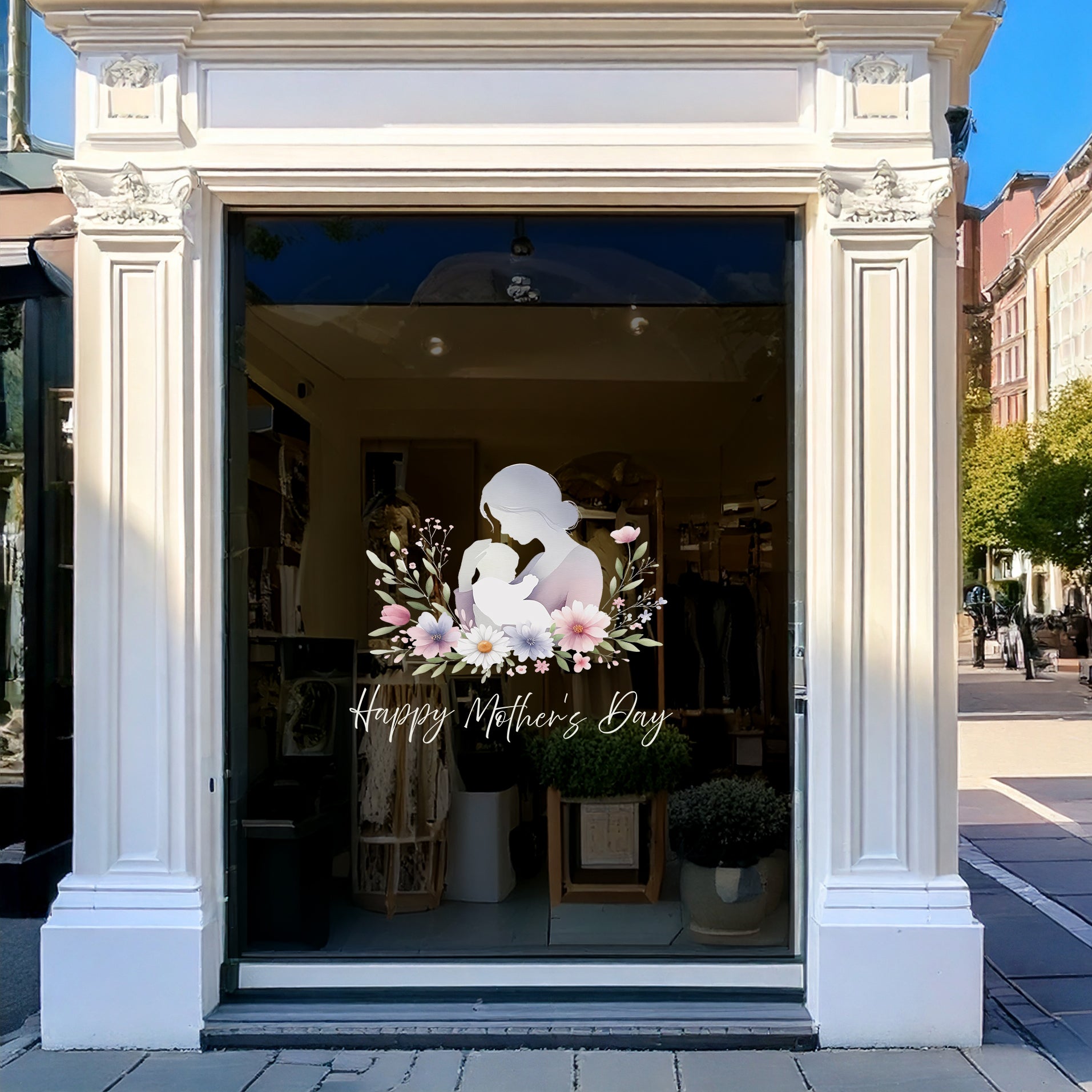 Mother & Baby with Daisy Flowers Mother's Day Window Decal