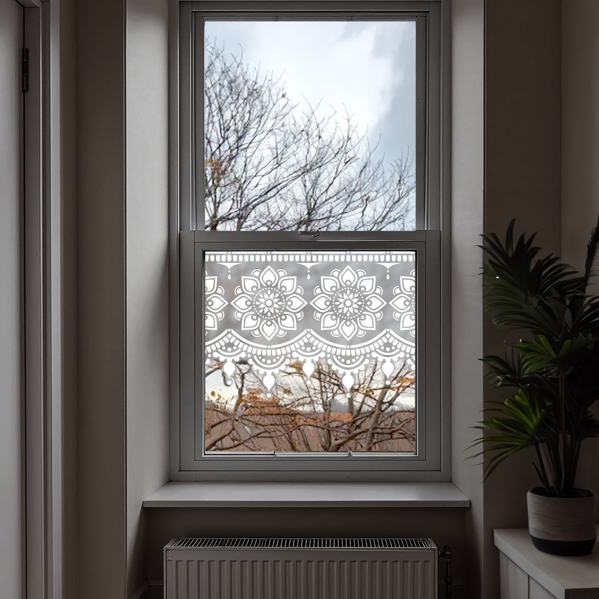We also have a clear background option for our border window films.  Our non-frost privacy window film borders offer a modern alternative to net curtains, only a lot more stylish!  Fab windows where you only want the bottom half of the window to be obscured but not fully private.