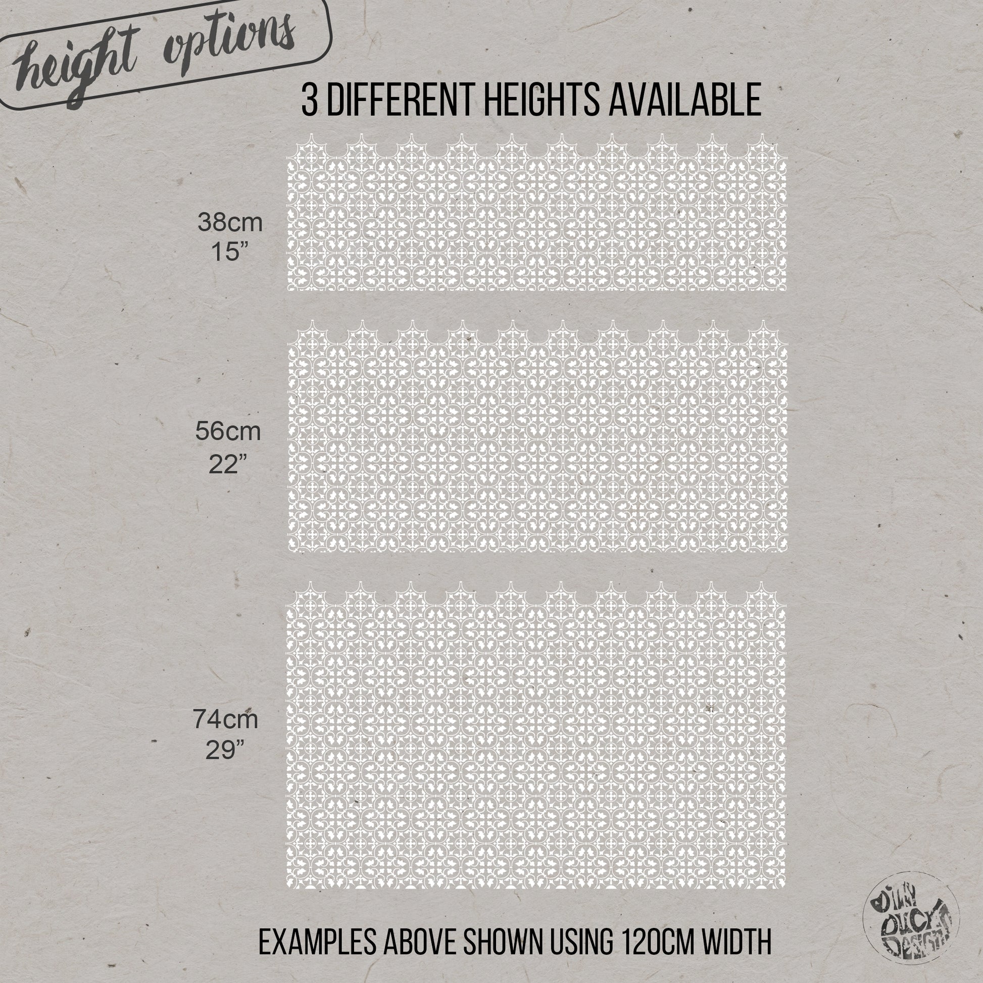 Widths:  60, 90, 120, 150 and 180 cm (24, 35, 47, 59 and 71 inches)